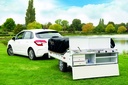Het grondzeil en de voortent slechts op de 4 hoeken fixeren en de voortent simpelweg aanritsen aan de wagentent