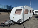 Caravan wordt geleverd incl. half automatische mover titanium, boiler, heki dakluik, fietsendrager voorop, hordeur, ringverwarming, serviceluik, verzwaarde steunen en vouwwand bij het vaste bed en voortent