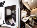 Zonneluifel met regenprofiel, achteruitrijcamera, LED buitenverlichting, lithium accu, zonnepaneel 140 W, luxe plissé verduistering in de cabine, comfortmatrassen, Construct beveiliging