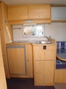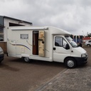 De Miller Manitoba is een compacte, halfintegrale camper voor 3 personen. Onder het vaste dwars bed achterin is een ruime garage voor al kampeerspullen.