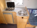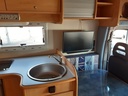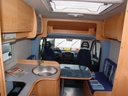 Voorin is een zitgroep met twee draaibare cabinestoelen en twee bankjes, waar indien nodig een 3e slaapplaats gemaakt kan worden.