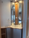 Naast het bed bevindt zich de toilet en in het midden de keuken.