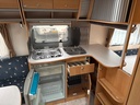 Geliefde caravan met Rondzit aan de achterzijde en frans 2 persoons bed aan de voorzijde.
